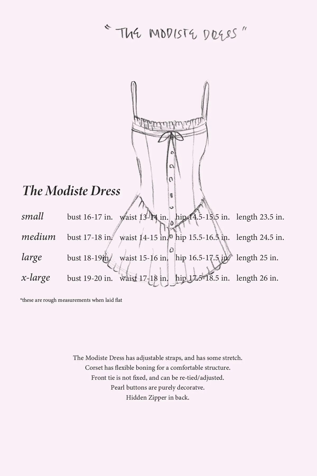 The design is meticulously completed with exquisite pearl buttons. Perfect for any formal occasion or special event, the Modiste Dress promises to make you feel both elegant and confident.